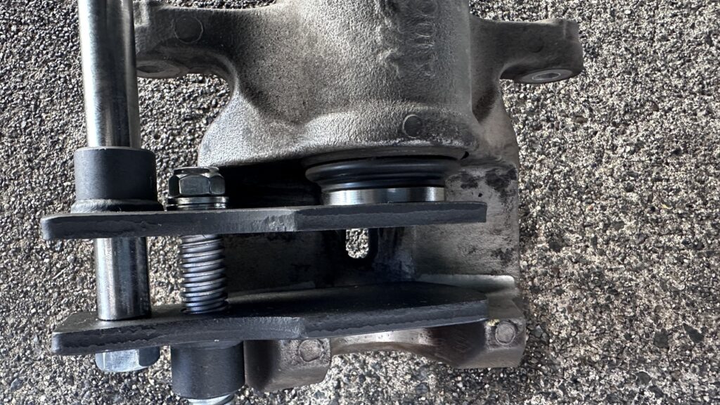 キャリパーを戻し、12mmボルトを規定トルクで締め付けます。